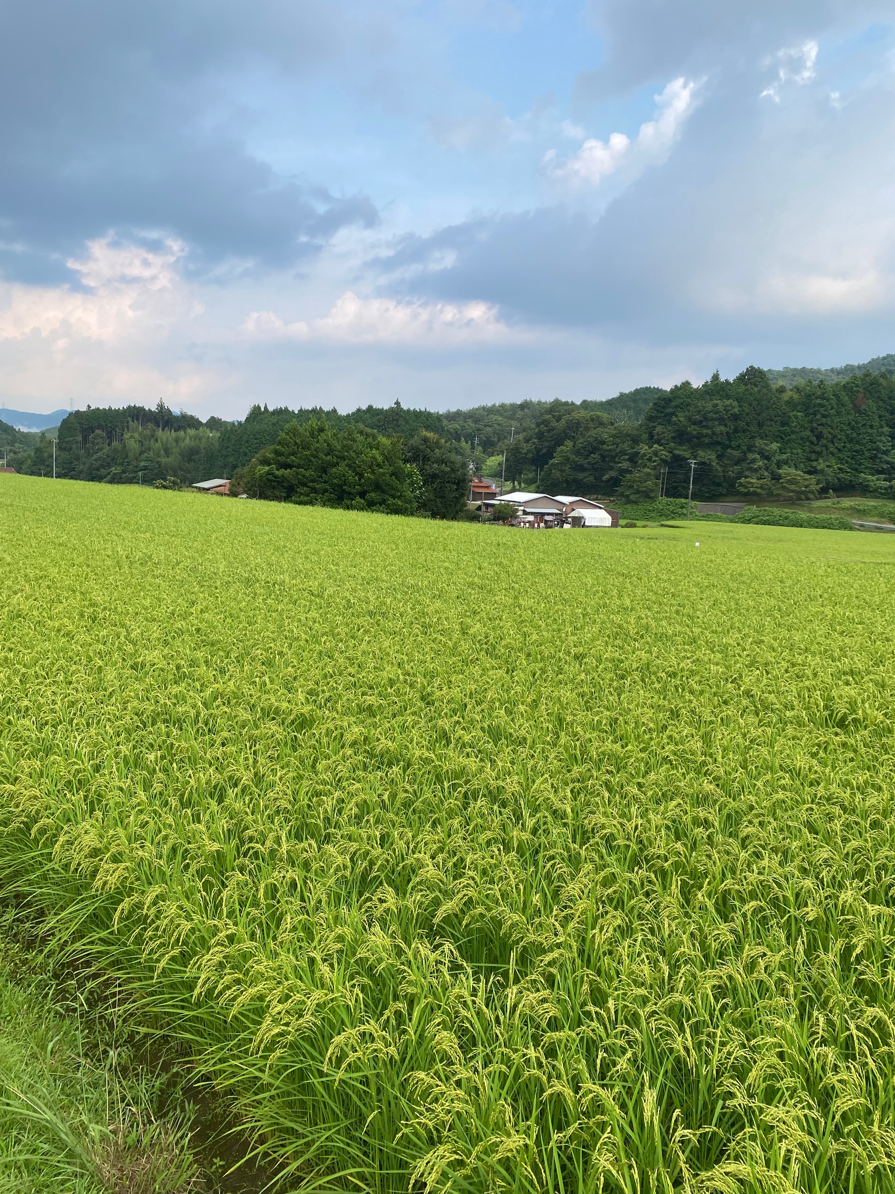 ここ鹿野今井地区は山口県内で随一コシヒカリの種籾の生産地。美味しいお米にするためにこまめな水管理、病害虫抑制のための草刈り、こまめな稗取りをしています。自然いっぱいに丁寧に育てたお米は美味しさ倍増です。